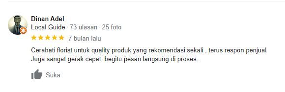 Dengarlah apa yang pelanggan kami katakan tentang pengalaman mereka dengan Cerahati Florist. Kami bangga menjadi bagian dari momen-momen istimewa dalam hidup mereka dan berbagi kebahagiaan melalui keindahan bunga.